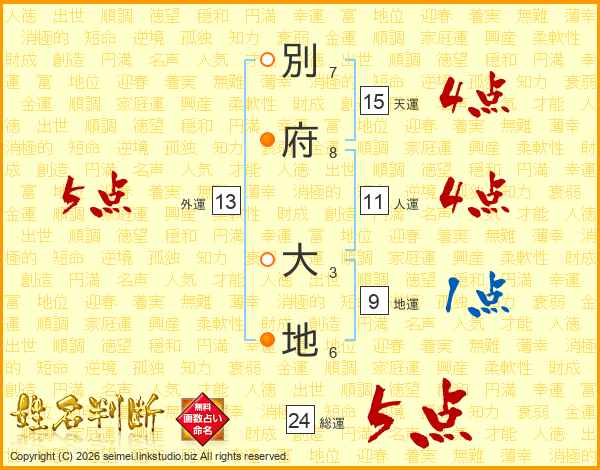 別府大地さんの総運は24画の5点!