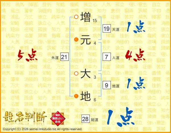 増(15画)元(4画) 大(3画)地(6画)