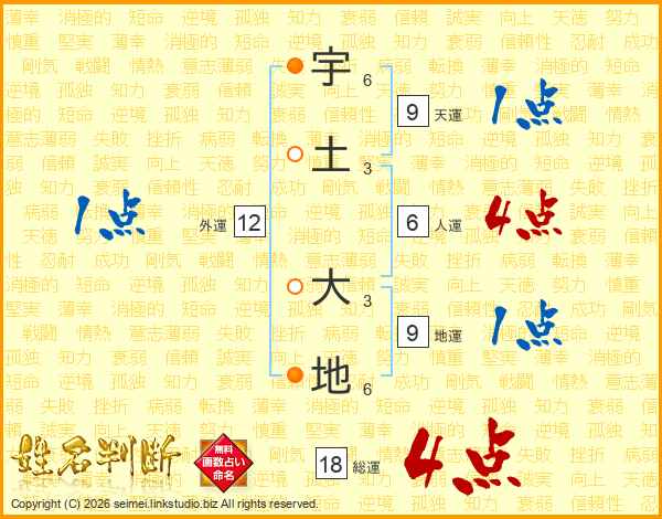 宇土大地さんの総運は18画の4点!