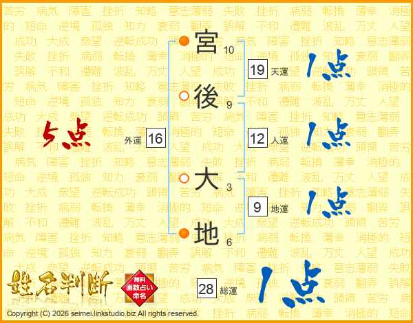 宮後大地さんの総運は28画の1点!