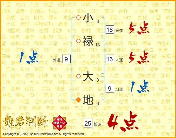 小禄大地さんの総運は25画の4点!
