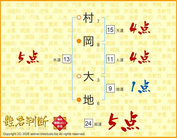 村岡大地さんの総運は24画の5点!