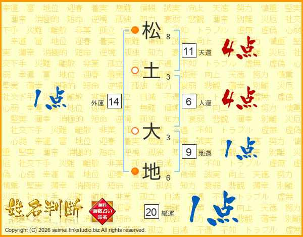 松(8画)土(3画) 大(3画)地(6画)