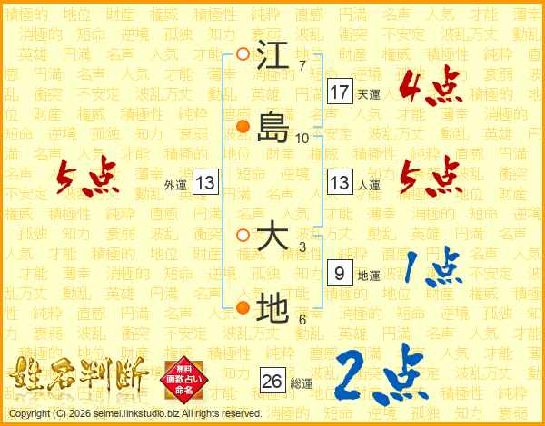 江(7画)島(10画) 大(3画)地(6画)
