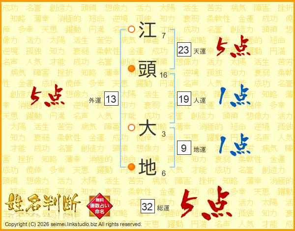 江頭大地さんの総運は32画の5点!