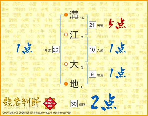 溝江大地さんの天運は21画の5点!