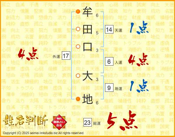 牟(6画)田(5画)口(3画) 大(3画)地(6画)