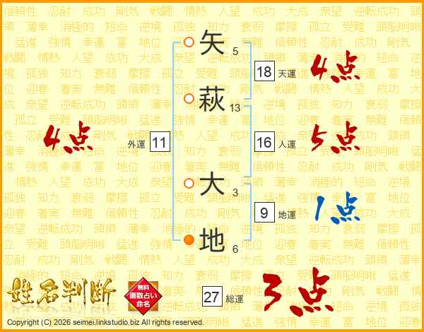 矢萩大地さんの天運は18画の4点!