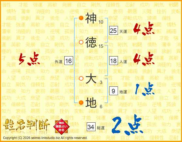 神徳大地さんの総運は34画の2点!