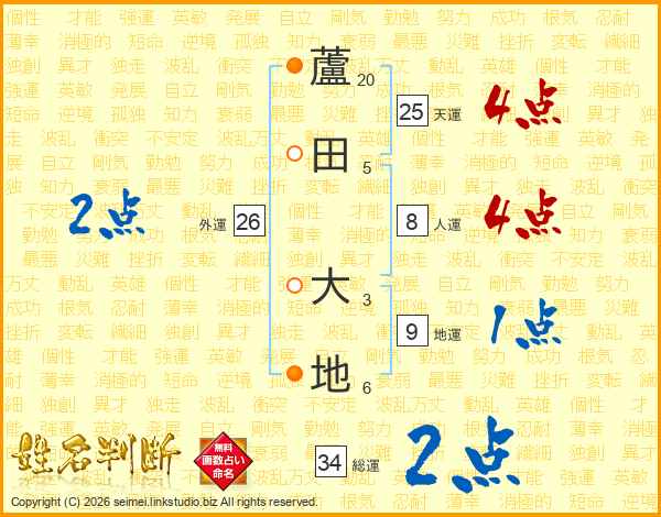 蘆田大地さんの天運は25画の4点!