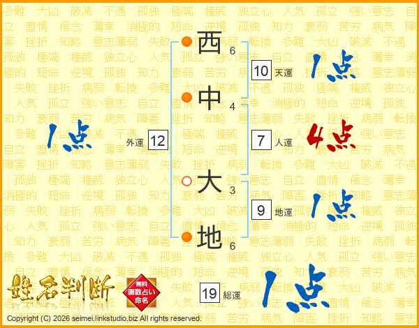 西中大地さんの天運は10画の1点!