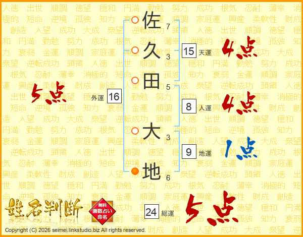 佐久田大地さんの総運は24画の5点!