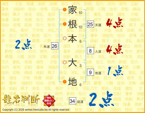家根本大地さんの総運は34画の2点!