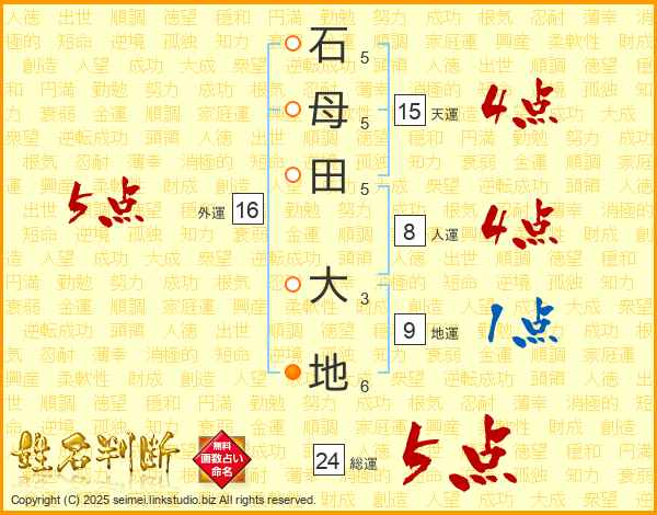 石(5画)母(5画)田(5画) 大(3画)地(6画)