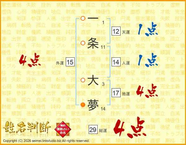 一条大夢さんの総運は29画の4点!