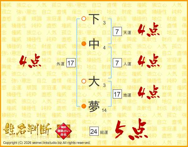 下中大夢さんの地運は17画の4点!