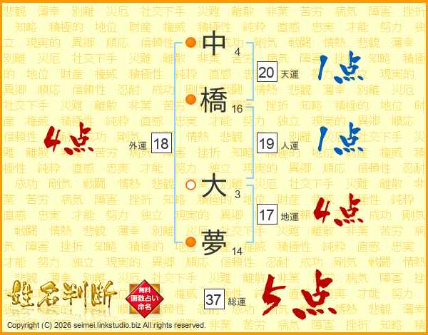 中橋大夢さんの総運は37画の5点!