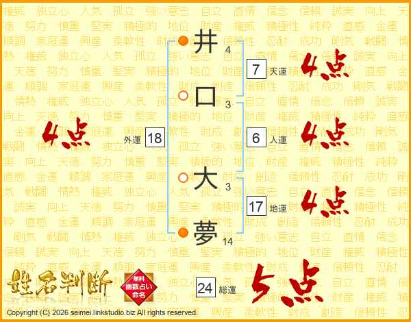 井口大夢さんの総運は24画の5点!