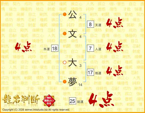 公文大夢さんの総運は25画の4点!