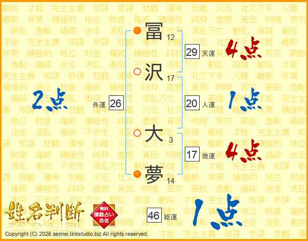 冨沢大夢さんの天運は29画の4点!