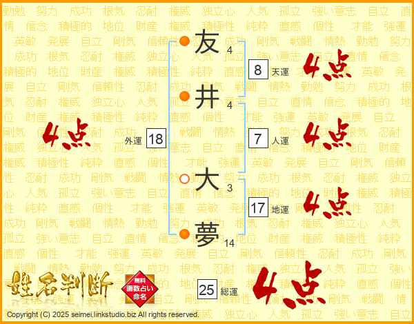 友(4画)井(4画) 大(3画)夢(14画)