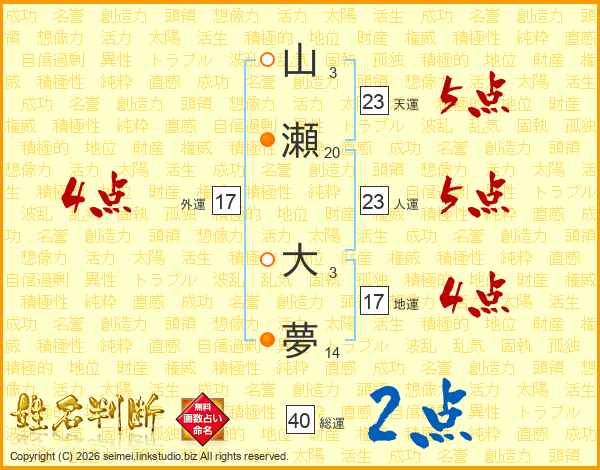 山瀬大夢さんの人運は23画の5点!