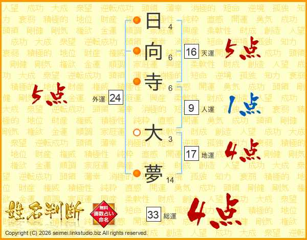 日向寺大夢さんの総運は33画の4点!