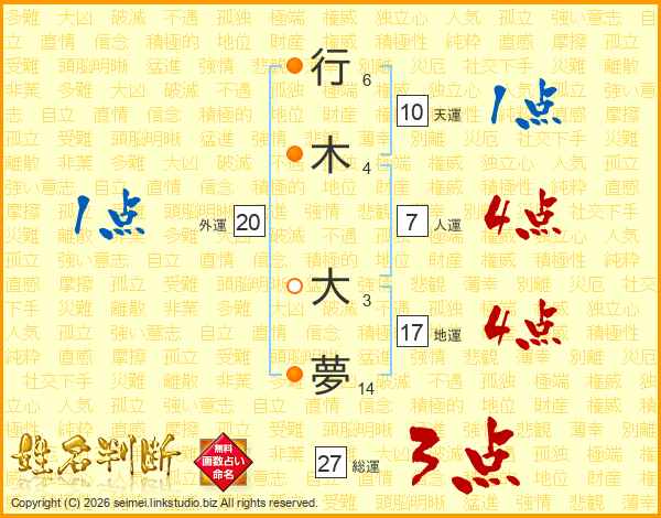 行木大夢さんの人運は7画の4点!