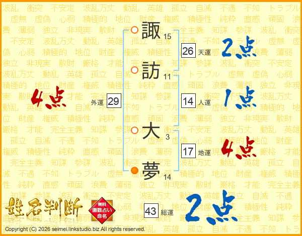 諏訪大夢さんの天運は26画の2点!