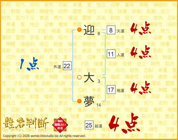 迎大夢さんの総運は25画の4点!