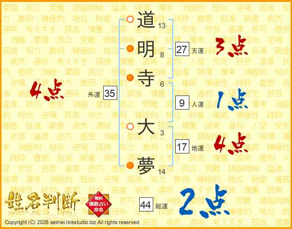 道明寺大夢さんの総運は44画の2点!