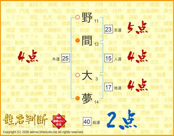 野間大夢さんの地運は17画の4点!