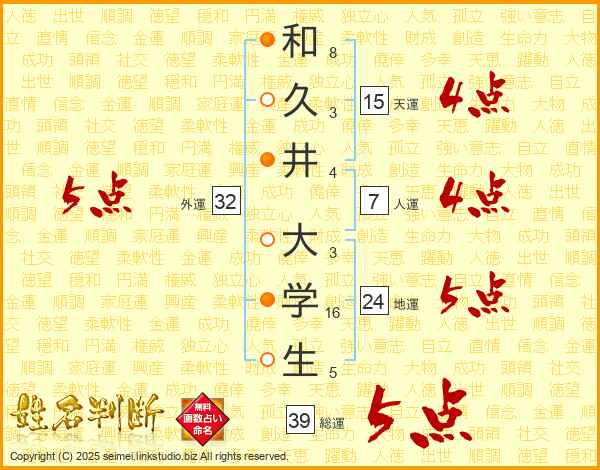 和久井大学生さんの総運は39画の5点!