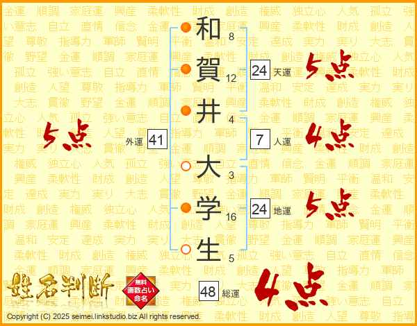 和賀井大学生さんの地運は24画の5点!