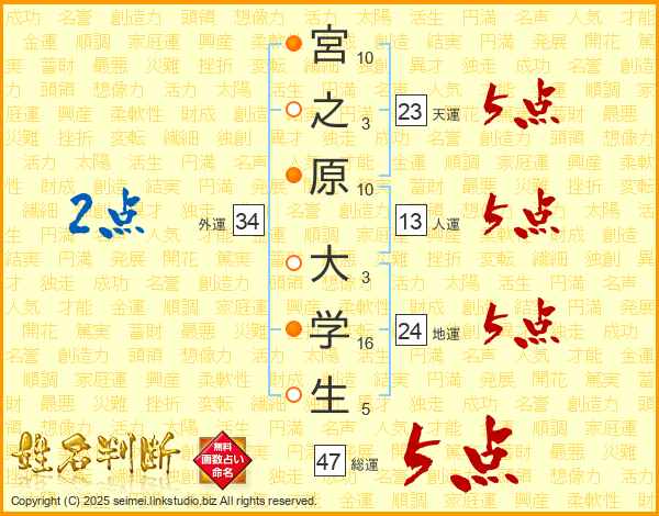 宮之原大学生さんの総運は47画の5点!