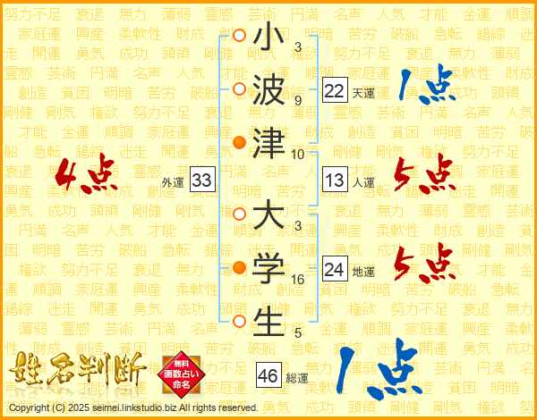 小(3画)波(9画)津(10画) 大(3画)学(16画)生(5画)