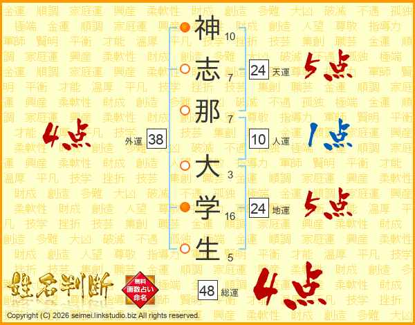 神(10画)志(7画)那(7画) 大(3画)学(16画)生(5画)