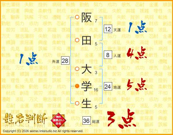 阪田大学生さんの地運は24画の5点!