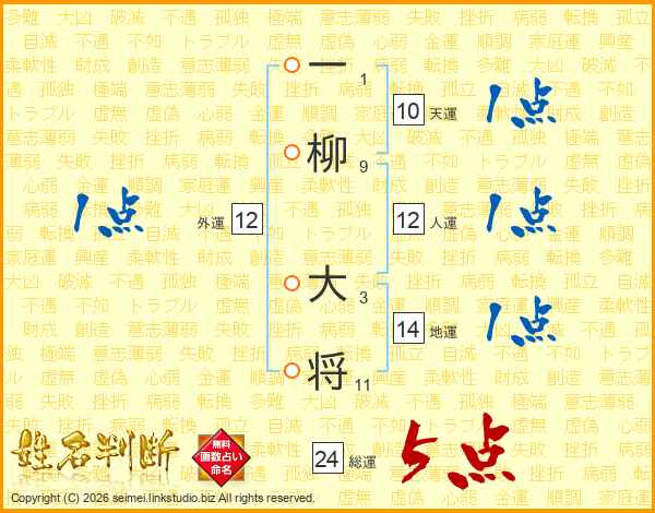 一柳大将さんの総運は24画の5点!