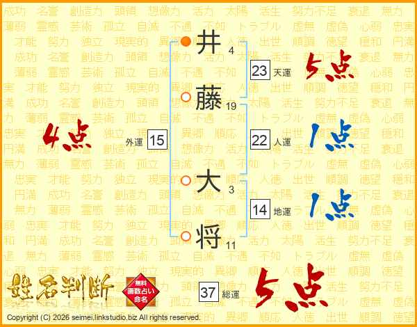 井藤大将さんの総運は37画の5点!