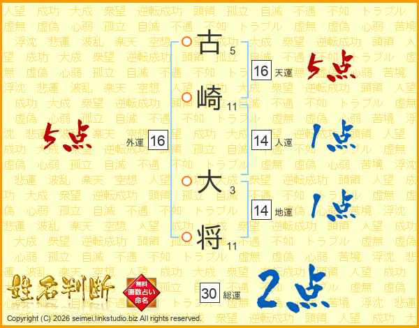 古崎大将さんの総運は30画の2点!