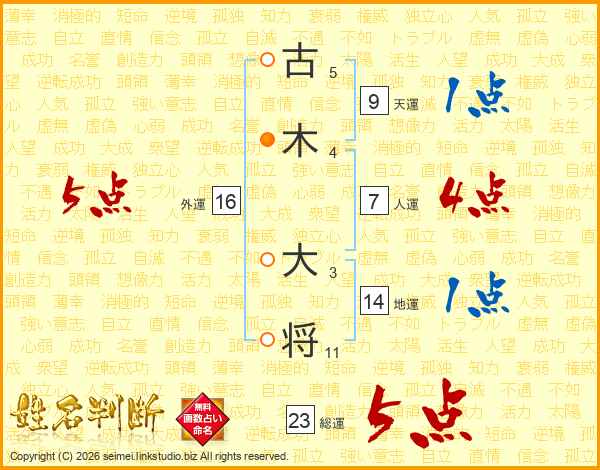 古木大将さんの総運は23画の5点!