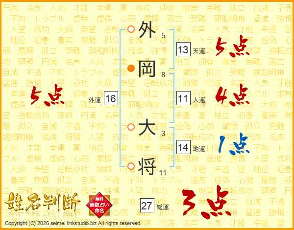 外岡大将さんの天運は13画の5点!