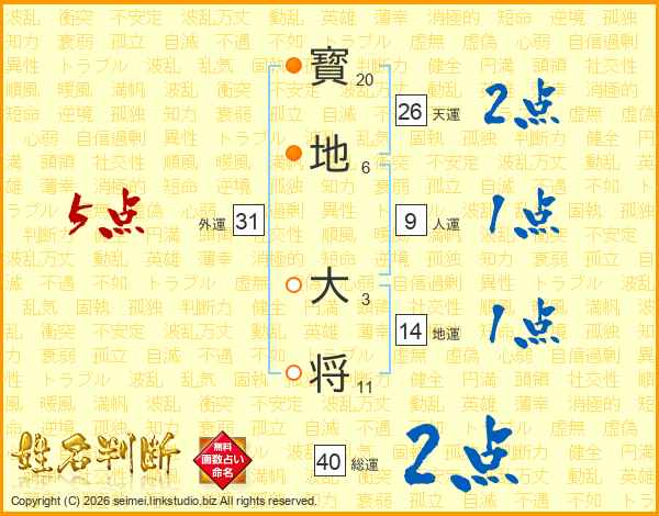 寳地大将さんの天運は26画の2点!