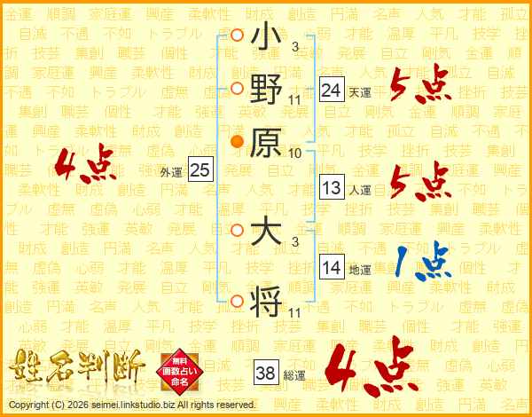 小野原大将さんの総運は38画の4点!