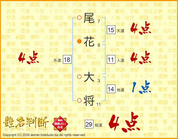 尾花大将さんの総運は29画の4点!