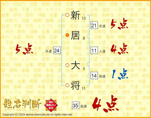 新居大将さんの総運は35画の4点!