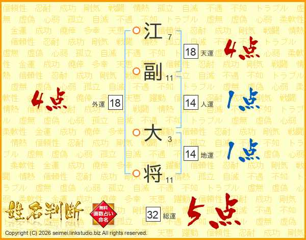 江副大将さんの総運は32画の5点!