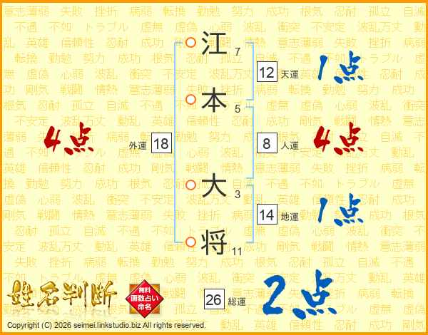 江本大将さんの総運は26画の2点!