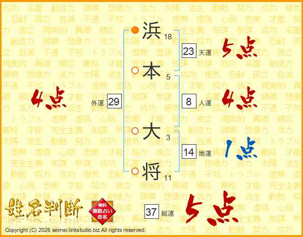 浜本大将さんの総運は37画の5点!